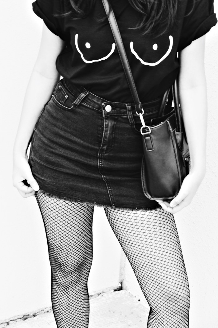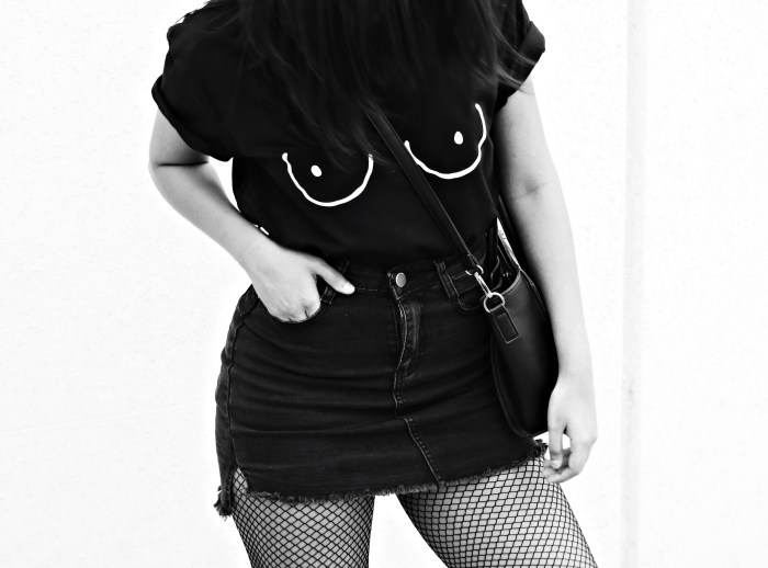 I’ll get straight to the point here: Kendall Jenner tee for less. Spotted it on Instagram, like I spot everything else, and well the rest is history. Kendall wore it in white, which I probably should have gotten instead of black, but oh well it’s cheap enough to buy in both colors. Next, I want to say that I’ve been wearing this skirt religiously. I had my eye on a Topshop washed black denim skirt, and then I found this one from ROMWE. Super stretchy and fits every curve, as you can clearly tell. I’m wearing a size Small. It is also a hi-low cut, and has a raw hem!