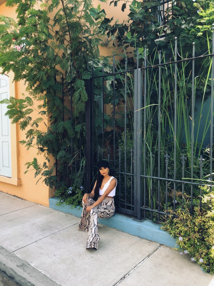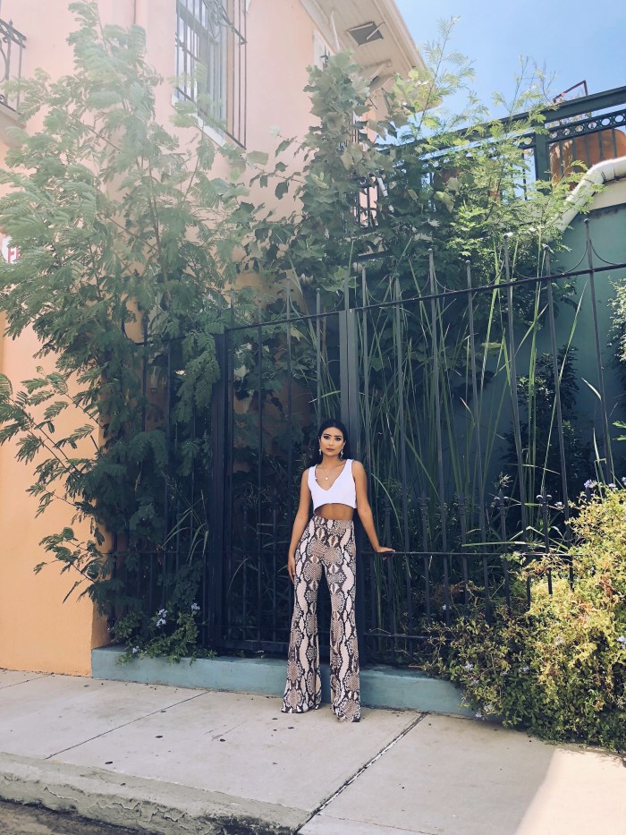 How is everyone? As always, I’m sorry that I’ve been away. I missed blogging so much! I’ve told you all recently that I have been working on creating better content this year, but it’s much easier said than done. I’ve been really busy and haven’t found time to shoot. I work a lot, and the only day I have off I’m doing self-care and watching anime. But anyways, I’ve been seeing snake print so much on my instagram feed! First of all I want to start by saying I’ve been wearing COLORS for a few weeks now, and it’s been extremely liberating (for those that do not know, I have always been a lover of all black pieces). So naturally my next step was to try some sort of print, and I ended up with this pair of flares. I won’t lie to you, my first impression of the pants was that the material was odd. I mean, for the most part they fit amazing and accentuate your thighs and butt. I’m wearing the smallest size available, and Misspap offers free US shipping which I LOVED. Next, my top. It is literally one of the best purchases I made in 2018. I also have it in black, and it has a very unique cut to it. A cool-but-essential wardrobe staple in my opinion.